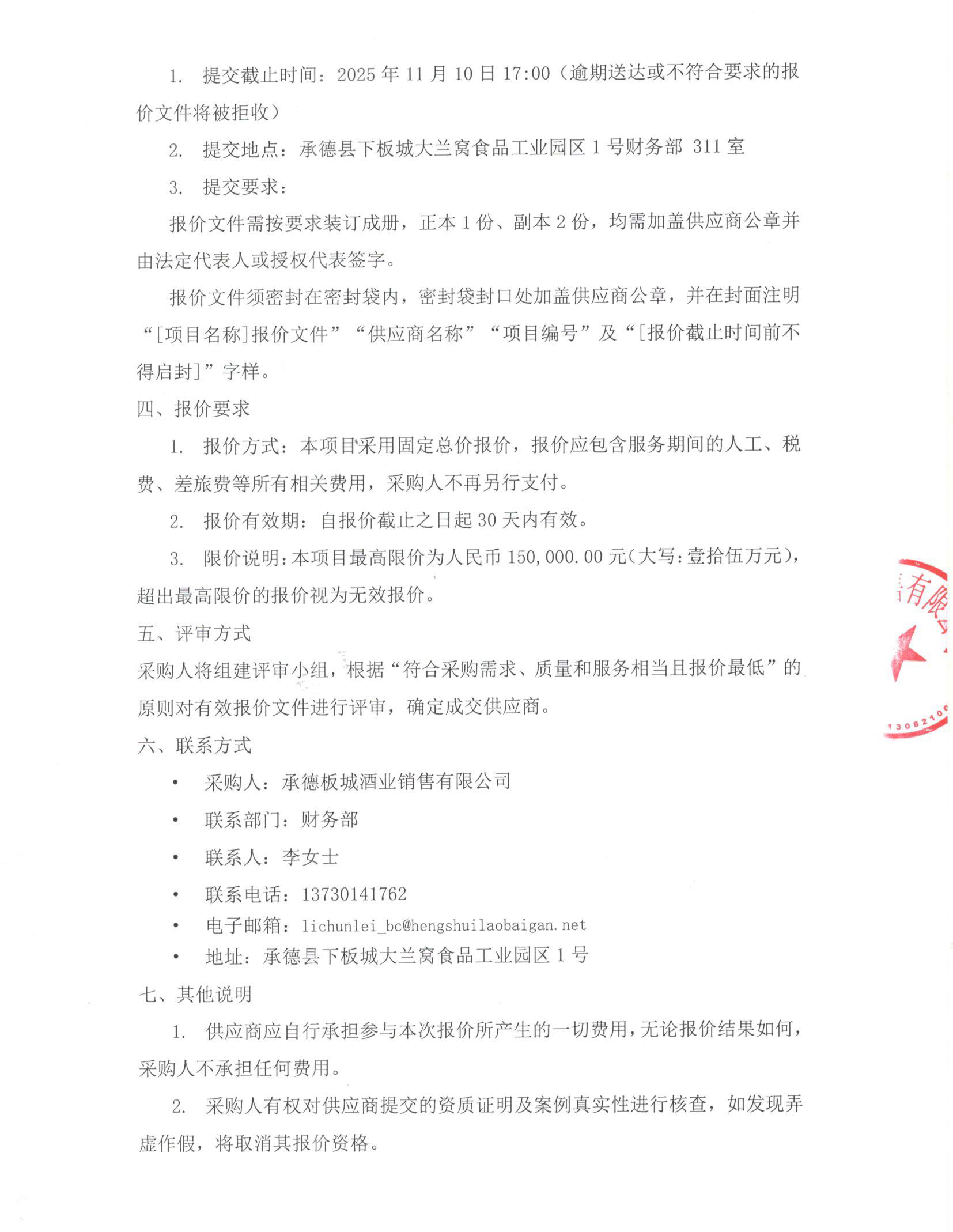 > 承德板城酒業(yè)銷售有限公司一般稅務(wù)咨詢服務(wù)項(xiàng)目密封報(bào)價(jià)公告